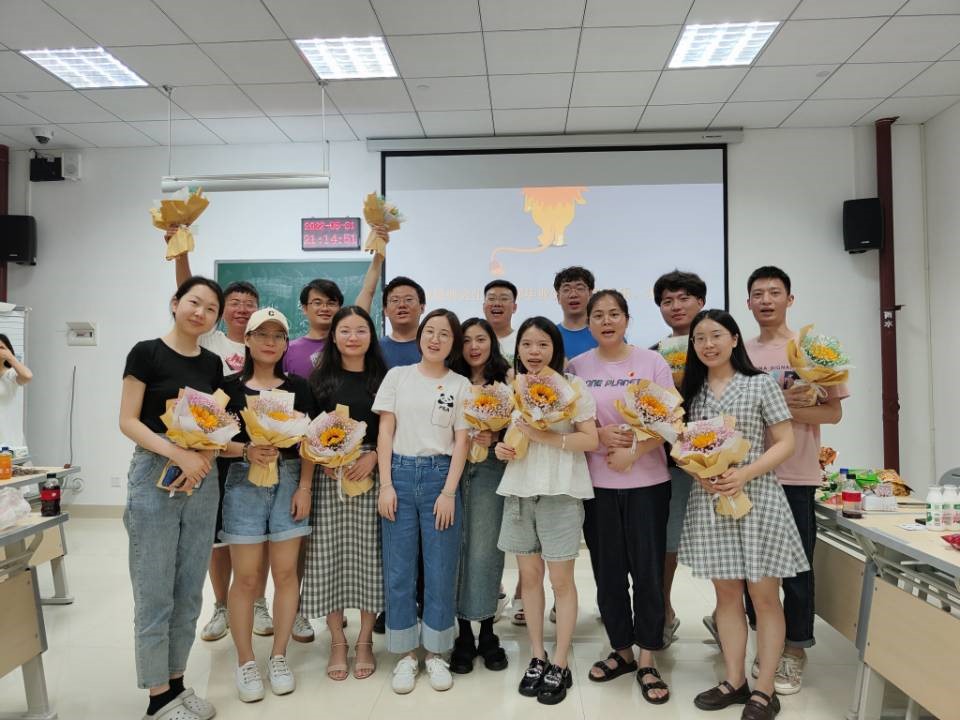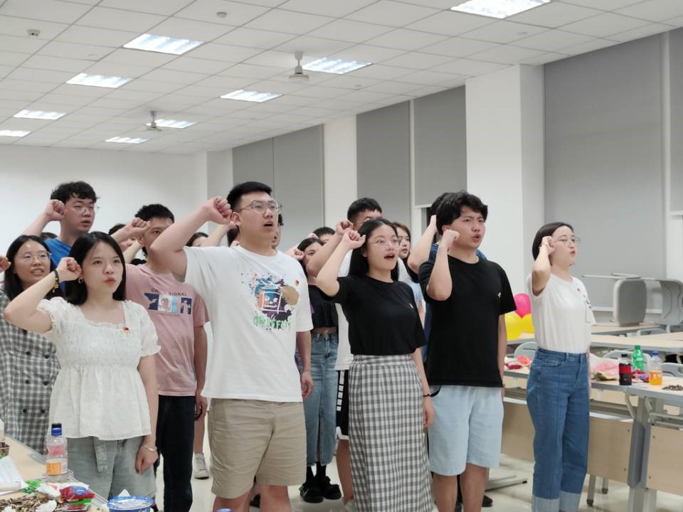 座谈会最后,其他党员同志纷纷为毕业生党员送上期望与祝福。随后,党支部书记吴秋云书记上台对本次座谈会进行总结发言,并为毕业生党员送上毕业“加油包”及鲜花束,最后带领全体党员面向党旗、举起右拳,重温入党誓词。