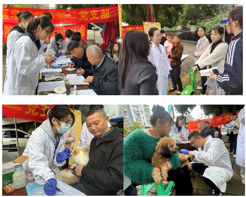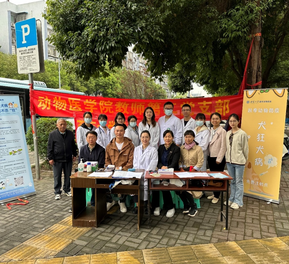 工会带领西南大学教学动物医院骨干医生和兽医学研究生,与重庆市北碚区农业农村委员会合作,在蔡家汪家堡社区开展了犬只狂犬病疫苗免费接种活动。