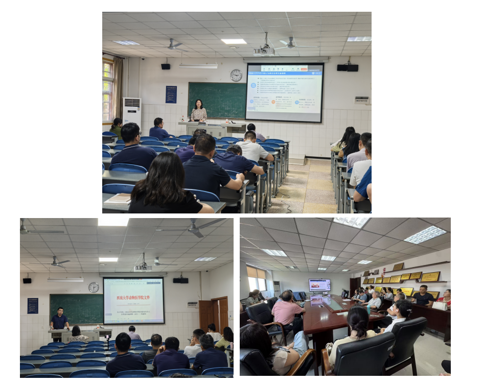 深入学习贯彻文件要求。会议传达了《中国共产党思想政治工作条例》、《西南大学学术不端行为调查处理实施细则》、高校科研经费规范使用相关文件的相关要求。全体教职工要遵循新时代思想政治工作要求,全面落实立德树人的根本任务,以身作则,捍卫学术尊严。同时,规范经费使用旨在为科研“松绑”与“护航”,其出发点是优化流程、明确规范、强化责任,大家要认真学习,自觉遵守。