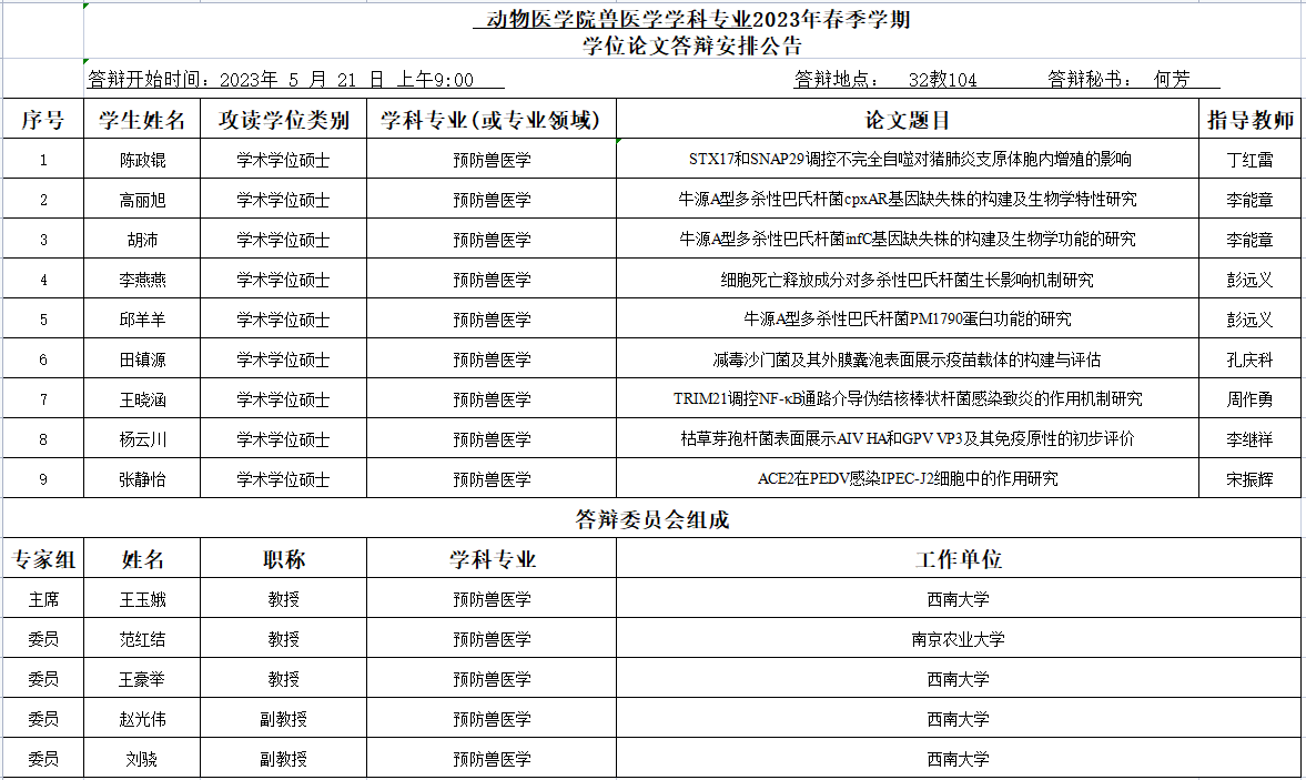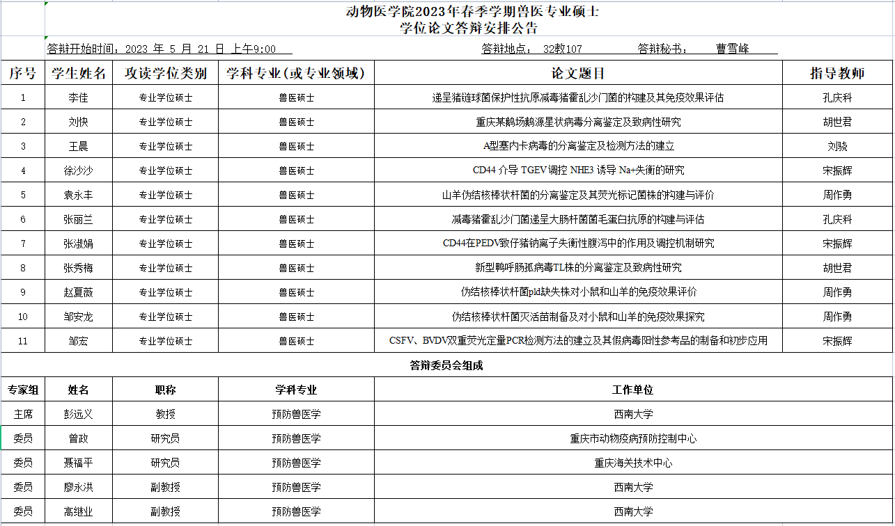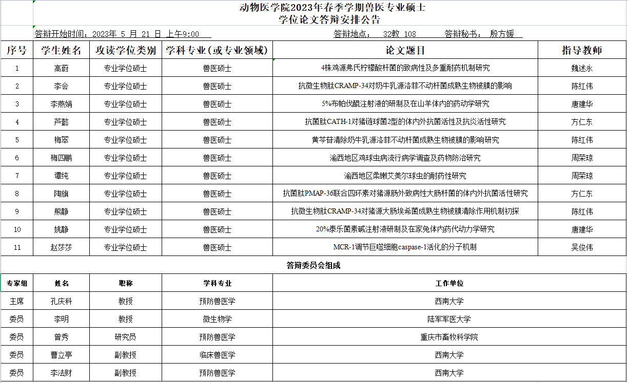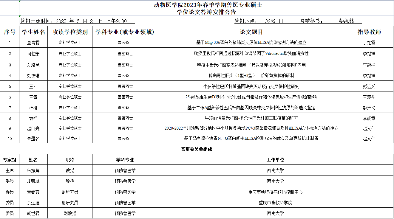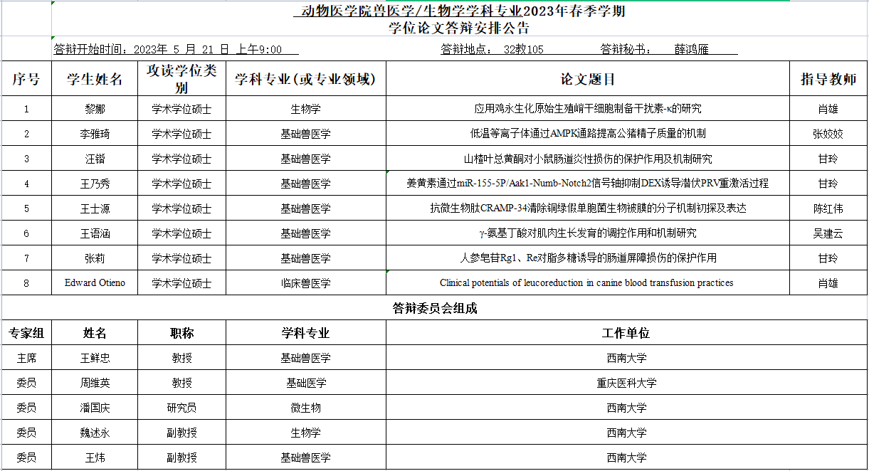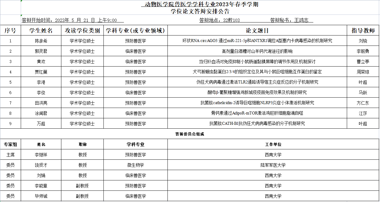 人人体育 2023年春季学期硕士学位论文答辩安排公告