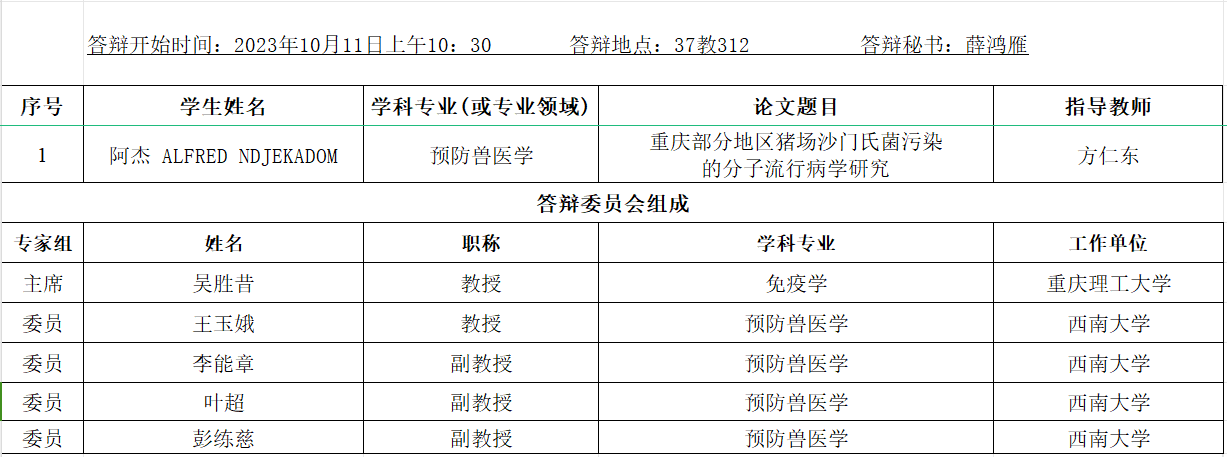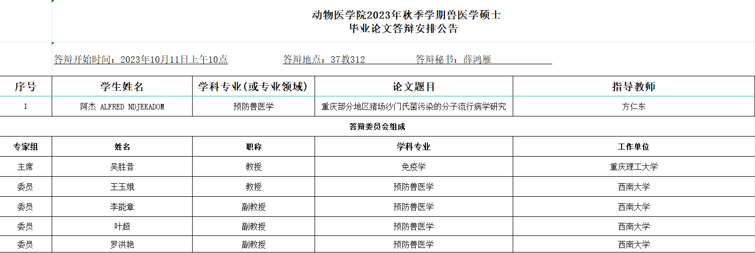 人人体育 2023年秋季学期兽医学硕士毕业论文答辩安排公告