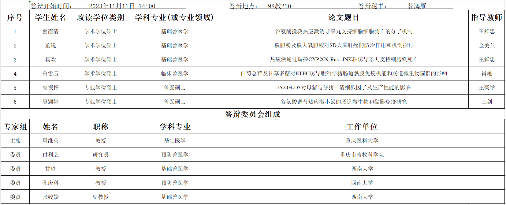 人人体育 2023年秋季学期学位论文答辩安排公告