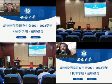 第二届研究生会主席团成员、各部门负责人依次就本学期负责的各项工作开展情况做述职报告,最后,研究生辅导员李林园老师做总结讲话。