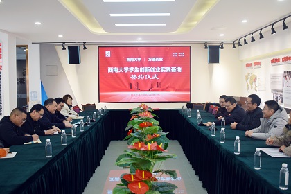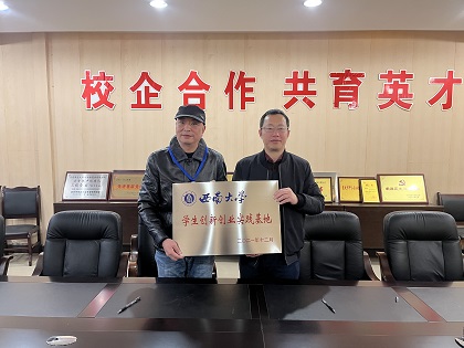 黄昌建书记代表学校向各公司授牌。在与会嘉宾的共同见证下,双方签署了共建西南大学学生创新创业及校外教学实习基地合作协议。
