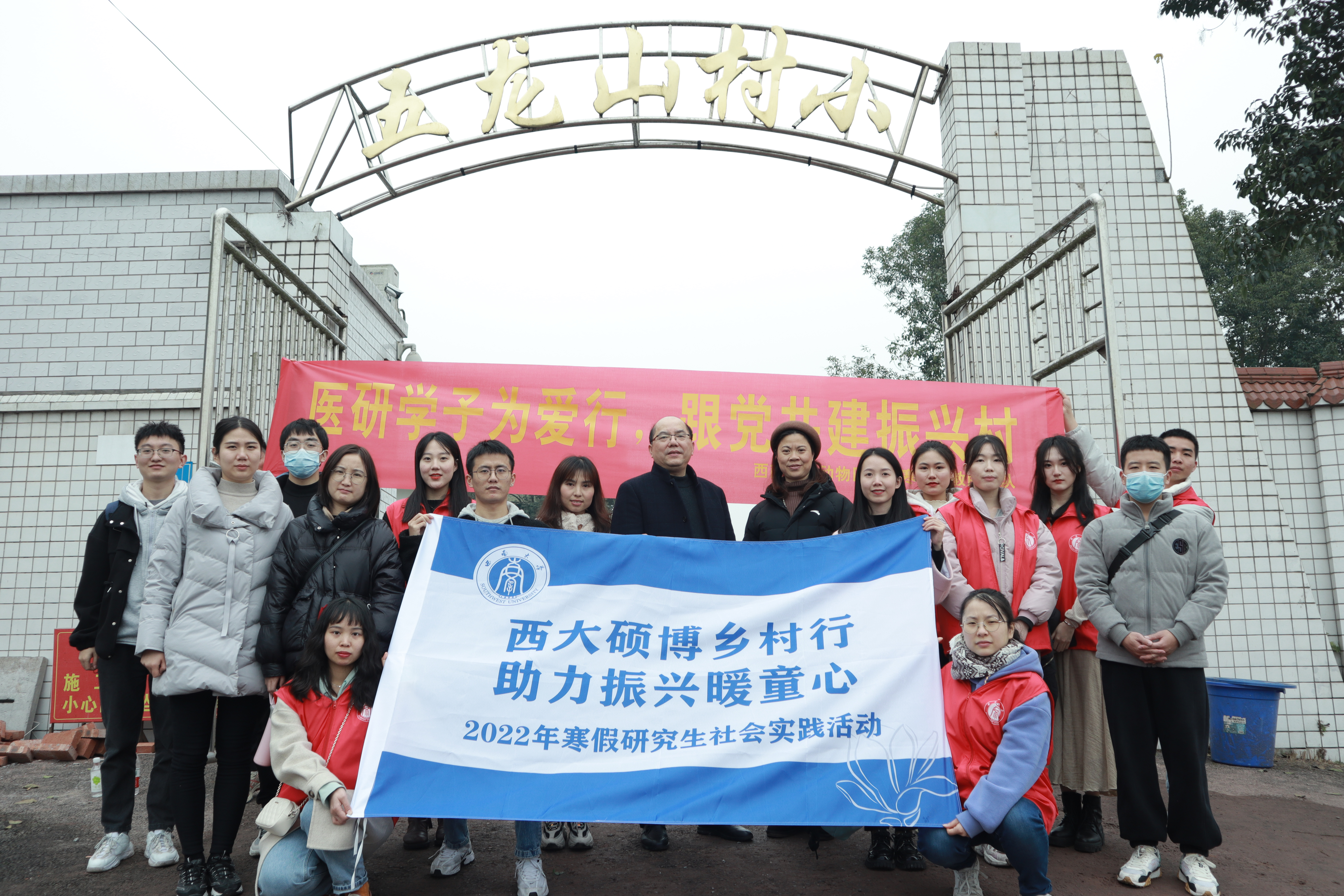 党委副书记、纪委书记黄庆洲、团委书记刘晓兰、研究生辅导员李林园、吴秋云带领由14名研究生组成的朱沱镇五龙山村小志愿服务队抵达重庆市永川区朱沱镇五龙山村小。