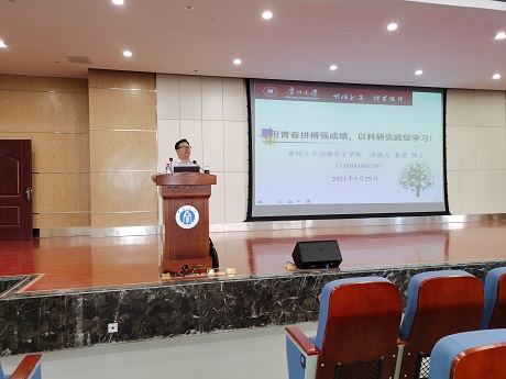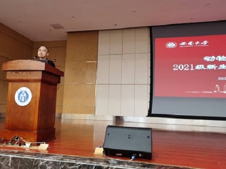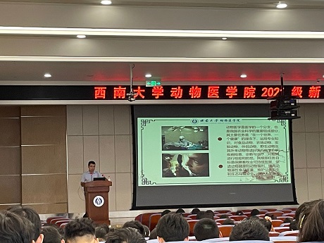 为了发挥榜样模范作用,引导新生立志成才。帮助新生了解就业途径和就业前景,特别邀请了杰出校友贵州大学汤德元教授、四川德康农牧食品集团股份有限公司吴江利总经理作了“专业学习与人生发展”主题的报告。
