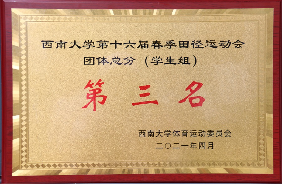 在此次赛事中硕果累累,最终获得团体总分第三名的好成绩。学生团体赛方面,在女子4*100米接力赛中获得银牌;在男子4*400米接力赛中获得第五名;在女子4*400米接力赛中获得第六名;在跳长绳比赛中获得第五名。学生个人赛方面,肖智天斩获男子三级跳金牌与男子跳远铜牌;吕红、杨苑、邹凌姿分获女子三级跳第二名、第五名、第八名;李毕成、左宗韬分别获得男子跳高第三名、第六名;梅芹、冉进蓉分别获得女子1500米第三名、第七名;熊思雨取得女子100米第四名与女子200米第五名;冉进蓉取得女子800米第五名;吕红取得女子跳高第六名。