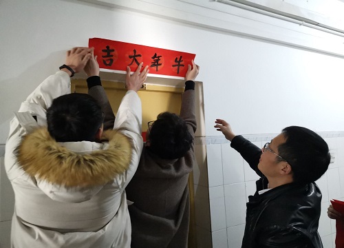 党政领导参观了部分留校学生宿舍,并和学生一起贴春联,为即将到来的新春佳节增添了浓厚的喜庆氛围。