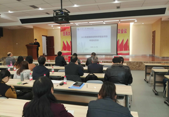 近几年申报和立项等具体情况进行了总结分析,强调了申请国家自然科学基金的重要性,并对2021年度申报工作进行了动员和布置,希望老师们总结经验,及早谋划。
