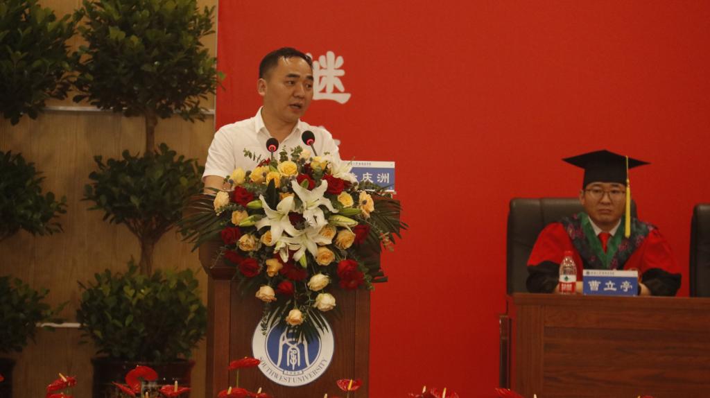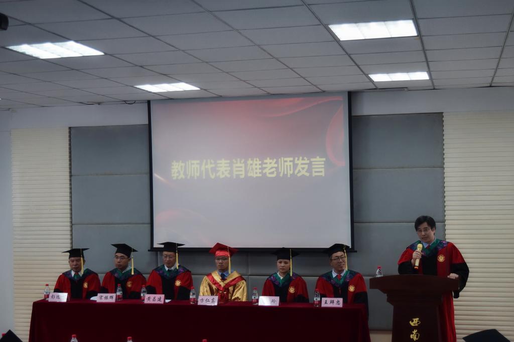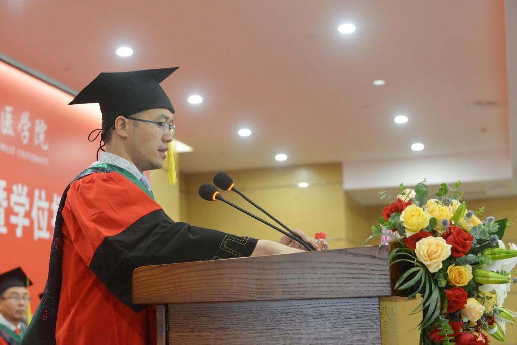 教师代表肖雄教授和高继业副教授在发言中向全院毕业生表示祝贺,高老师寄语毕业生要选择感激、选择善良、选择坚持、选择诗和远方,肖老师寄语毕业生要有梦想,敢于竞争、敢于挑战、开拓创新,踏踏实实做事,老老实实做人,成就更大的人生价值。