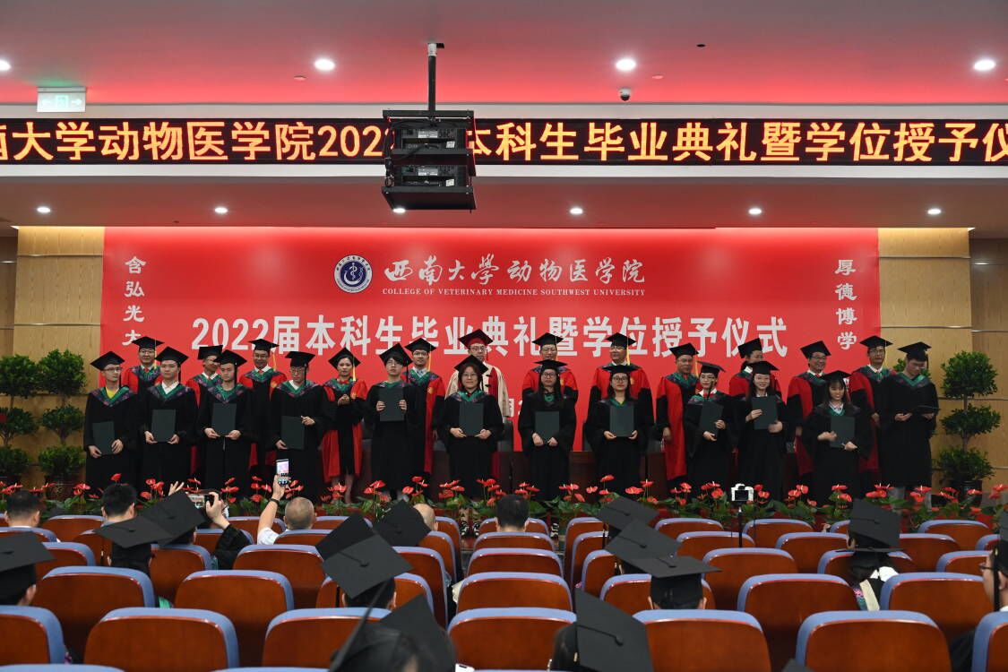 2022届学生毕业典礼暨学位授予仪式分别在荣昌7B201报告厅、北碚动物医院报告厅隆重举行。360余名本科生、70名研究生圆满完成学业将奔赴五湖四海,开启属于自己的锦绣前程。
