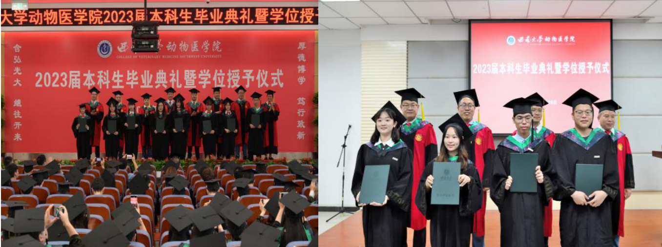 2023届学生毕业典礼暨学位授予仪式分别在荣昌7B201报告厅、北碚动物医院报告厅隆重举行。师生齐聚一堂,回首往昔,共同展望未来。