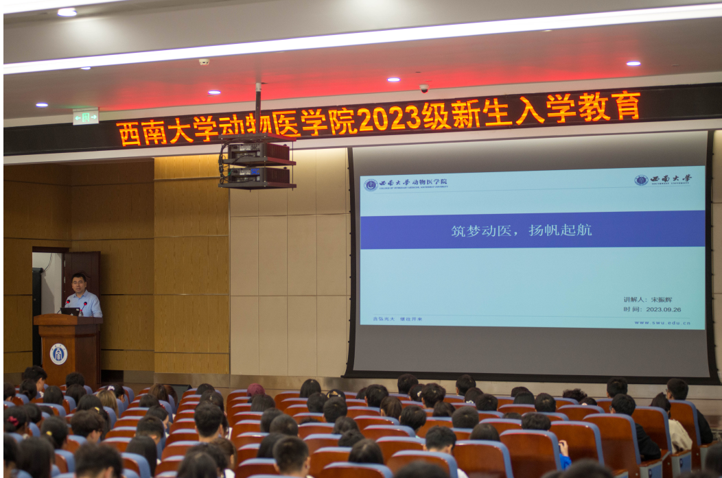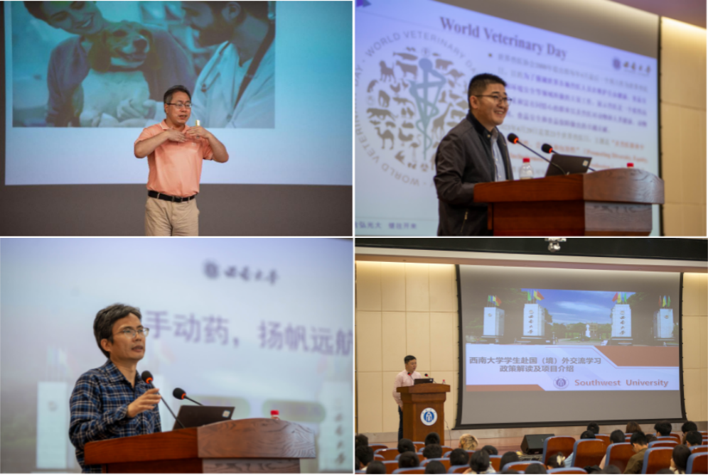 特邀请国际处老师开展了国际教育主题宣讲活动,帮助学生了解学校关于出国留学的相关政策,希望同学们积极利用学校推出的出国项目,加入到国际交流的行列中去。最后,中兽医学系主任曹立亭、动物药学系主任魏述永、动物医学系主任王鲜忠依次就专业何为、课程设置与特色、专业认同、师资力量、人才培养等方面进行详细讲解,以期帮助新生建立学科专业认识与个人发展规划,从而养成良好的学习习惯,潜心学习专业知识,树立正确的专业观念。下午,新生听取了“以青春之名传承历史 执青春之笔书写未来”为主题的“开学第一课”专题讲座,引导初入大学的青年学子们感悟校史底蕴,厚植家国情怀,砥砺强国志向。