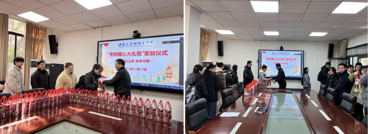 党委书记黄昌建、党委副书记、纪委书记罗丹、副院长宋振辉、团委书记兼学生工作办公室主任刘晓兰、2024届毕业班辅导员陈向阳,慰问2024届考研学生,向紧张备考的学子们送上充满美好寓意的“考研暖心大礼包”,真诚祝愿同学们在即将到来的研究生招生考试中旗开得胜,一战成“硕”。