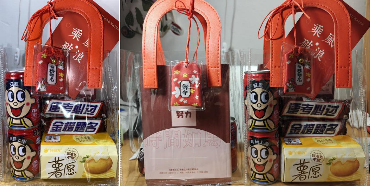 为2024届考研学子们精心定制,美味与心意并存。礼包里有一罐刻着考研学子姓名,另一罐刻着“考研上岸”的旺仔牛奶,寓意着“金榜题名,逢考必过”的士力架,收获成功的薯愿薯片,写满祝福的逢考必过笔记本,携挂着“金榜题名”祝福锦囊,还有承载着人人体育