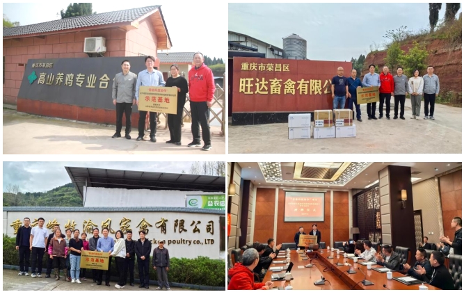 兽药创新团队负责人林树乾主任将“鲁渝科技协作示范基地”牌匾分别发放到了重庆市荣昌区高山养鸡专业合作社、荣昌区旺达畜禽养殖有限公司、重庆峰牧渝凤家禽有限公司和石柱坚迈农业开发有限公司,标志着鲁渝科技协作推动的《抗畜禽重大疫病的新兽药创制关键技术研究与应用》、《基于中兽医理论的家禽绿色中药饲料添加剂应用技术集成与应用》项目在重庆地区试验成功,为我市畜禽产业绿色发展注入了强大动力。