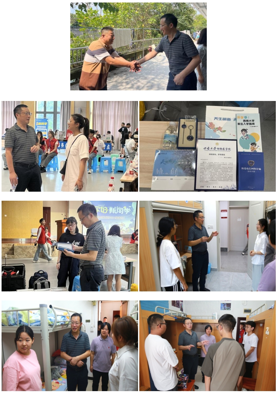 党政领导也莅临现场对迎新工作进行指导。党委书记黄昌建,党委副书记、纪委书记罗丹,在迎新工作开展地点与报道新生以及工作人员进行交流,仔细询问新生报到情况,指导迎新工作。随后黄书记一行到新生宿舍关心慰问新同学,并与学生及家长展开亲切交谈,细致了解新生报到状况,勉励同学们在未来的学习生活中锐意进取、不负青春韶华。