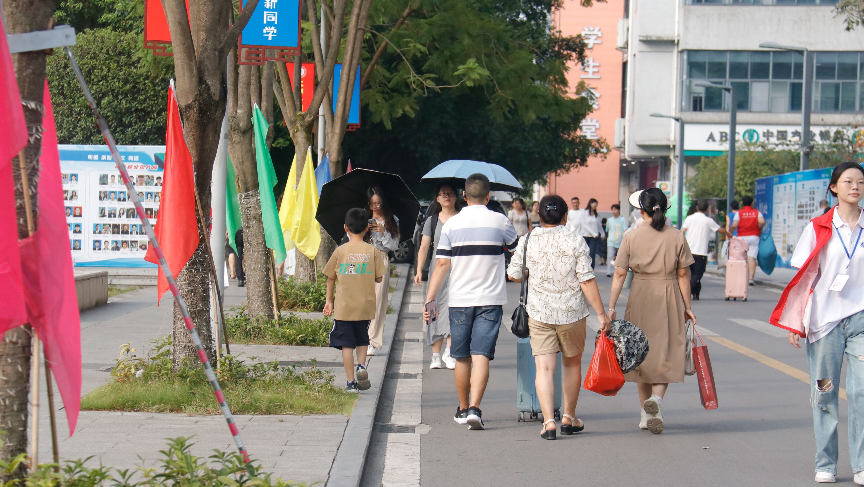 孩子送进大学的家长们久久不愿离开,百感交集的眼神里写满了不舍,更充满了期待。他们陪伴着孩子,宛如坚强的后盾。有的家长帮忙扛着沉重的行李,汗水湿透了衣衫却毫无怨言,一遍又一遍地叮嘱着生活的注意事项。他们的到来为开学报到现场增添了一份温暖与踏实。