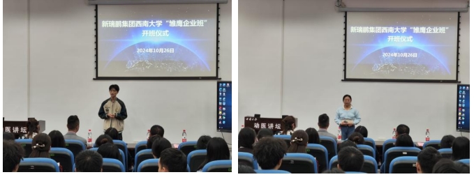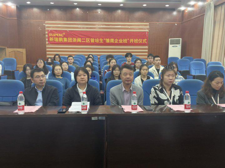 与新瑞鹏宠物医疗集团联合举办的雏鹰企业班开班仪式在3110报告厅举行。佳雯宠物医院创始人、新瑞鹏宠物医疗集团浙闽二区总经理、管培生项目组总负责人谢作缎,新瑞鹏高级内训师、新瑞鹏浙闵二区市场总监、管培生项目组课程负责人招梦利,新瑞鹏浙闵二区人力资源部负责人、管培生项目组管理负责人张素美,人人体育