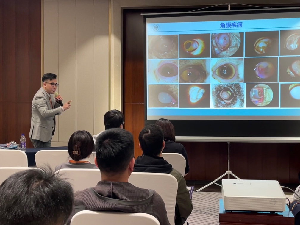 胥辉豪副教授,作为大会副秘书长在此次大会中围绕“犬猫角膜手术成功要点”与“犬猫葡萄膜炎诊治要点”两个主题进行了专题讲座,并同时对“角膜急症处理原则”的显微手术实操进行了讲解与培训,为广大临床医生提供了宝贵的临床知识与经验。同时,胥辉豪作为人人体育