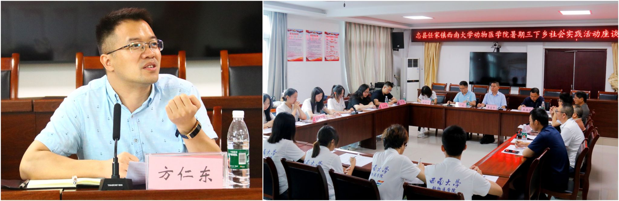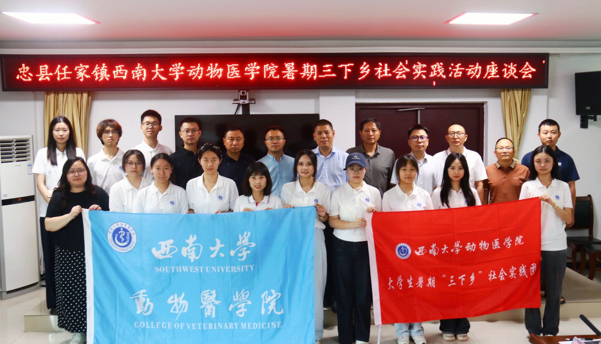 教师及“宠爱有家,医路同行”社会实践团,走进重庆市忠县任家镇,正式启动大学生暑期“三下乡”社会实践活动。任家镇党委书记李富华、镇长王海洋、党委副书记杨勇等镇领导全程参与。校地双方携手,旨在以动物医学专业力量赋能当地乡村全面振兴。