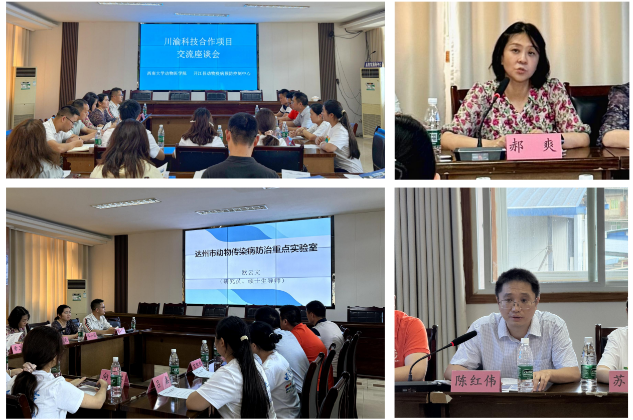 开江县畜牧业发展服务中心郝爽主任、李三均副主任、邓小莉副主任,开江县动物疫病预防控制中心负责人邓书明及与会人员围绕“项目联合申报、技术协同攻关、人才共育共享、共建科技创新实验室”等展开深入探讨,现场气氛热烈,思维碰撞中涌现出诸多切实可行的合作路径。郝爽表示,此次合作是科技与基层的深度拥抱,是高校与地方的双向奔赴,未来将以更开放的姿态、更扎实的举措,推动成果转化、优化科研生态,与西南大学共绘农业科技发展新图景。