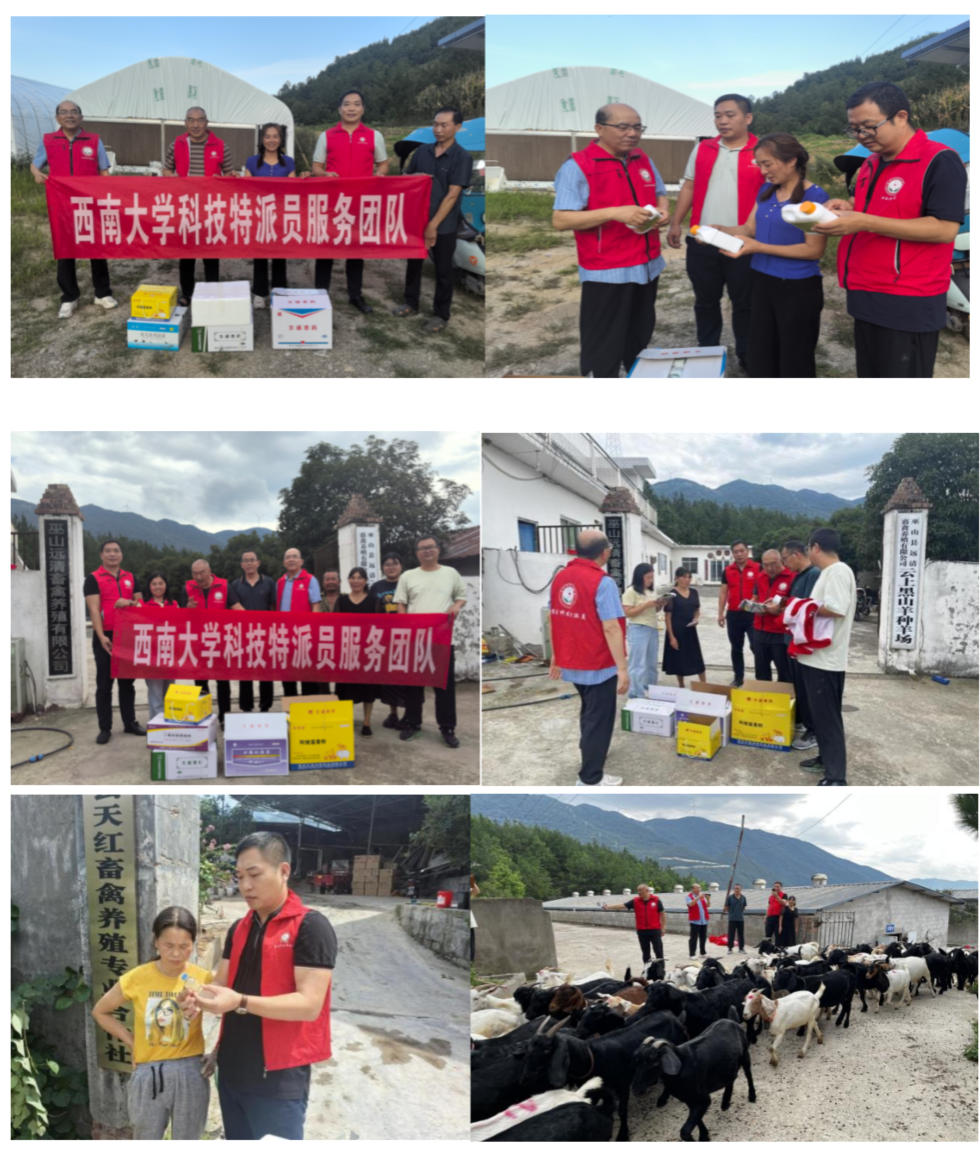 教师、重庆市科技特派员黄庆洲、帅学宏、焦寒伟、陈吉轩一行四人,于2025年9月4日至7日,到重庆奉节县、巫山县养殖企业开展科技服务,助推当地畜牧业转型升级,并给养殖户赠送了万余元的消毒、驱虫等动保药品。巫山县畜牧和水产技术服务中心蔡世军主任、余小利副主任,以及巫山县科技局刘云科长参加了本次科技服务活动。科技特派员根据养殖场的技术需求,针对性地开展科技服务,及时解决生产一线技术难题,受到养殖场负责人及主管部门领导的高度肯定。