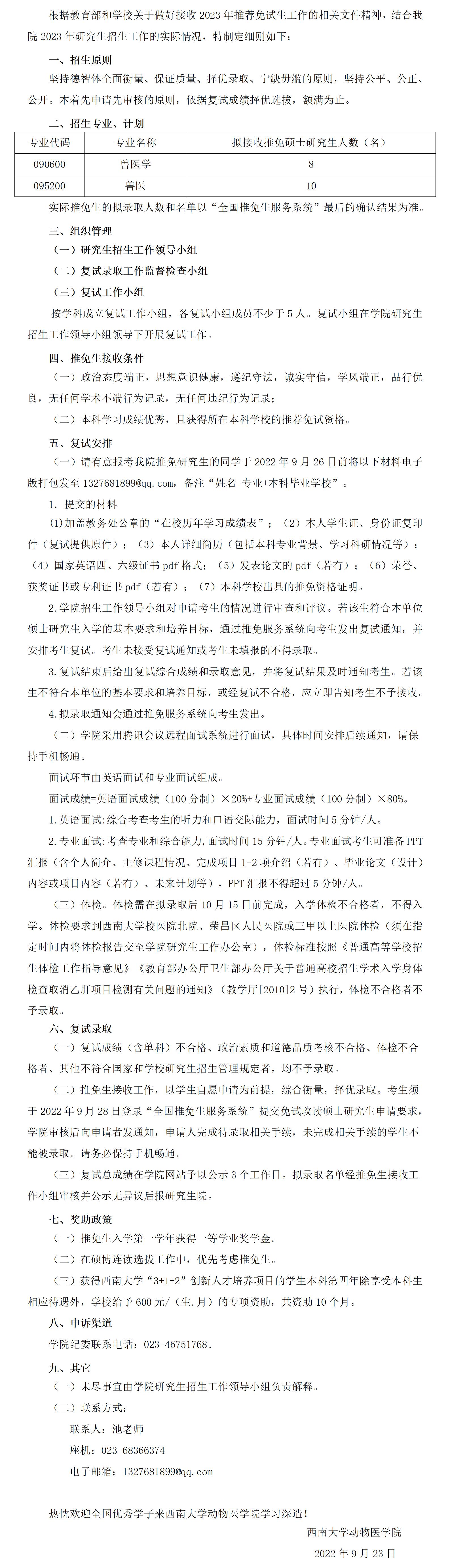 人人体育 2023年接收推荐免试研究生复试录取工作细则