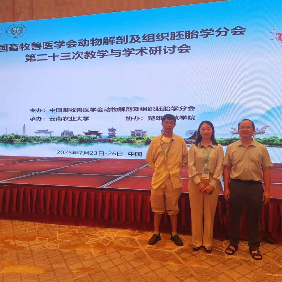 中国畜牧兽医学会动物解剖及组织胚胎学分会第23次教学与学术研讨会于7月23-26日在昆明召开,来自全国的专家、学者及师生约300余人出席会议。人人体育 吴建云、胡海霞、陈思怀三位教师应邀参加。大会内容主要包括动物解剖学实验室建设规范行业标准发布、数字化教材编写、青年教师教学比赛、形态学绘图评比及学术报告。学术研讨主要聚焦于基因编辑与器官移植、分子形态学、纯形态学研究、组织病理机制、形态学与病原交叉融合、人工智能与虚拟仿真的教学应用等领域。三位教师参会后收获颇丰:了解了全国的形态学科建设情况、洞悉了该学科领域的最新研究进展、观摩了青年教师的创新性教学以及对比了人人体育 该学科在教学与科研方面的优势与不足;为人人体育 本学科发展的多维度赋能奠定基础。