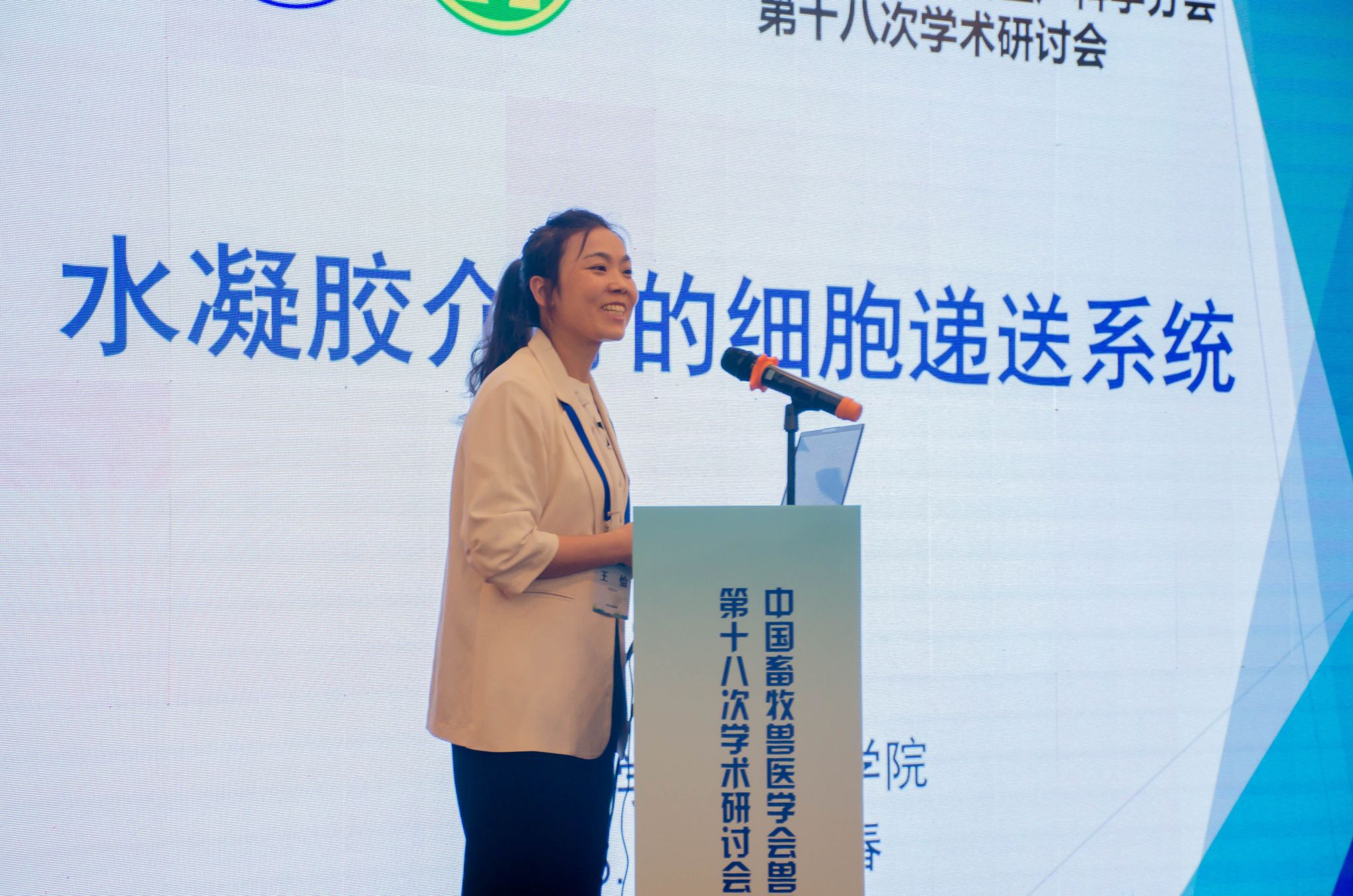 本次大会围绕动物产科疾病、动物产科基础、小动物繁殖调控、疾病与生殖激素药品专家座谈会进行了专题报告与讨论。应大会邀请,王怡以“水凝胶介导的细胞递送系统”为题进行学术报告,系统汇报了载氧水凝胶在细胞递送系统中的最新研究成果,获得与会专家的广泛关注与积极反馈。